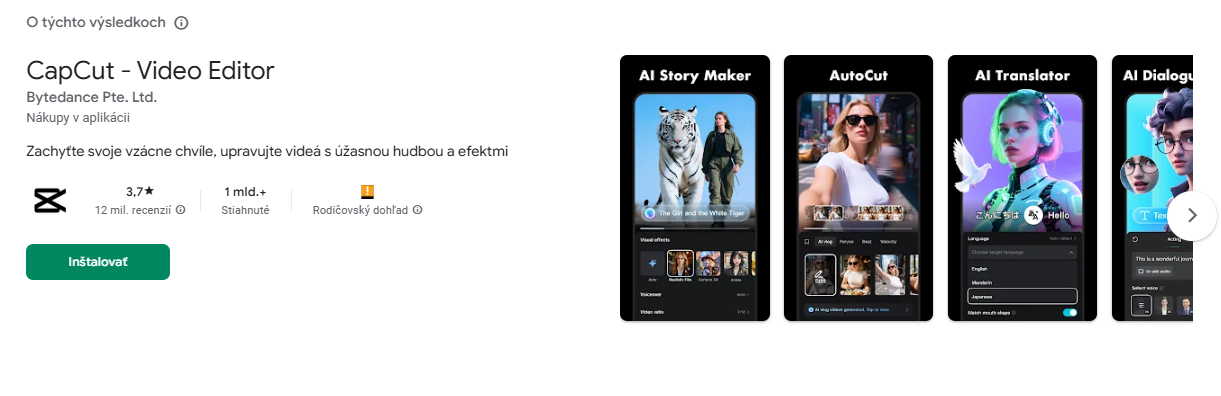 CapCut je aplikácia na úpravu videí, ktorá umožňuje používateľom vytvárať a upravovať videá priamo na mobilnom zariadení. S viac ako 1 miliardou stiahnutí na Google Play je obľúbená medzi tvorcami obsahu a influencermi. Aplikácia ponúka širokú škálu nástrojov na úpravu videí vrátane efektov, prechodov, filtrov a pridávania hudby.