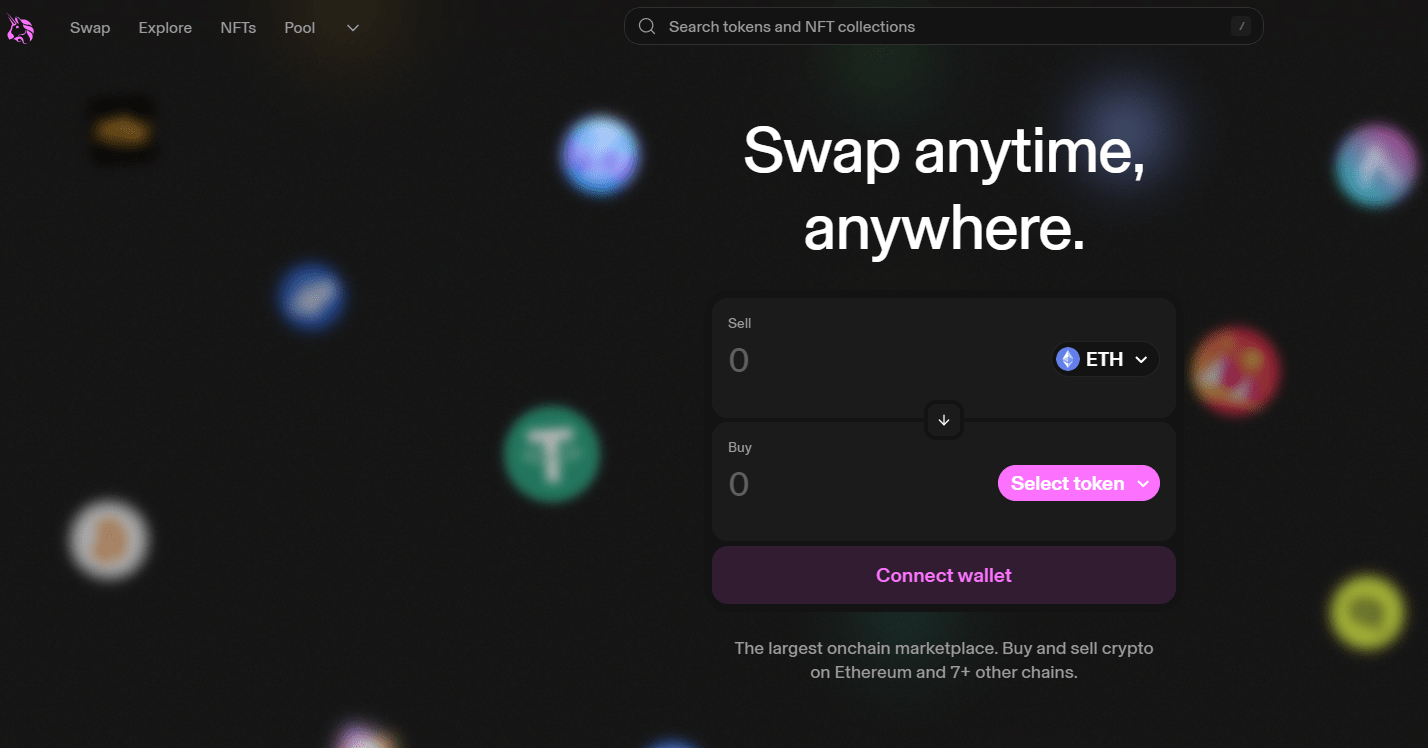 Uniswap je jednou z najpopulárnejších kryptomenových decentralizovaných búrz. Spustená bola v novembri 2018. Beží na blockchaine Ethereum a využíva množstvo inteligentných zmlúv na bezpečnú výmenu tokenov ERC-20 medzi používateľmi. Uniswap sa tiež snaží vyriešiť problém likvidity, ktorý je súčasťou iných búrz.