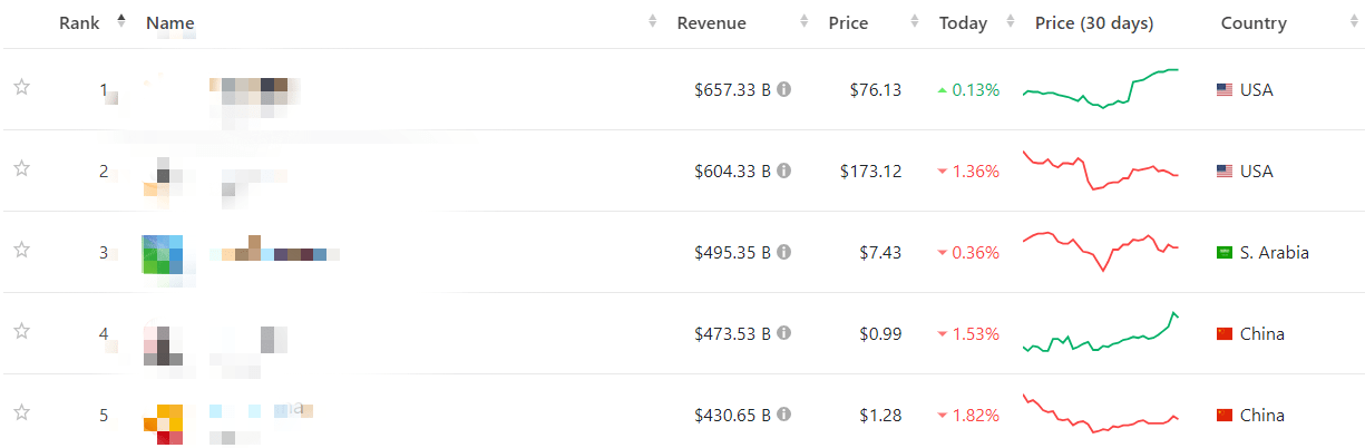 V rebríčku sa nachádzajú 2 firmy z USA, 2 z Číny a 1 zo Saudskej Arábie. Ich zameranie je odlišné a pôsobia v rôznych sektoroch. Niektoré z nich určite poznáte, no z niektorých budete určite prekvapení. Toto je top 5 spoločností podľa hrubého príjmu.