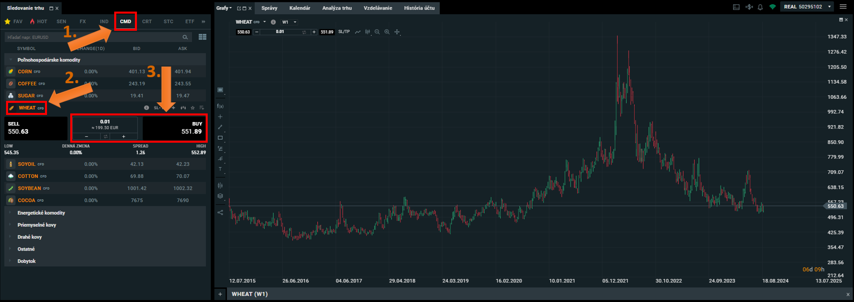 Vyhliadky do budúcnosti podporili aj správy od druhého najväčšieho spotrebiteľa pšenice na svete, Indie, koncom mája, že po júni pravdepodobne zruší dovozné clá na túto komoditu, aby vykompenzovali nízke štátne rezervy. Na obrázku nižšie môžete vidieť, ako jednoducho viete nakúpiť pšenicu na XTB.