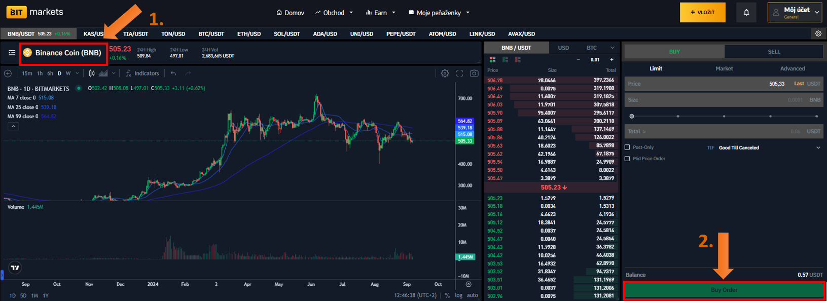 Cena BNB dokázala zaznamenať najvyššie historické maximum začiatkom júna 2024. Zlomila dokonca aj rekordy z predošlého cyklu. Takéto zhodnotenie sa v roku 2024 podarilo iba niekoľkým kryptomenám. Zároveň počas posledných mesiacov, kedy sa 9 z 10 kryptomien znehodnotilo o vyše 60 %, BNB sa držal v bočnej štruktúre. Na obrázku nižšie môžete vidieť cenový vývoj a postup, ako nakúpiť kryptomenu na burze BITmarkets.