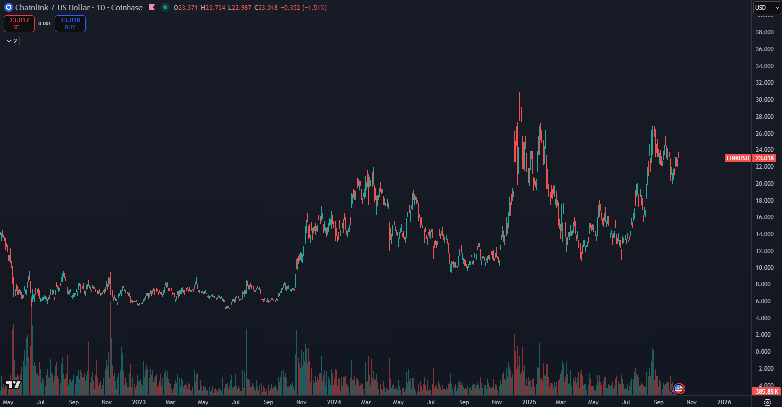 Cena kryptomeny LINK. Zdroj: tradingview.com