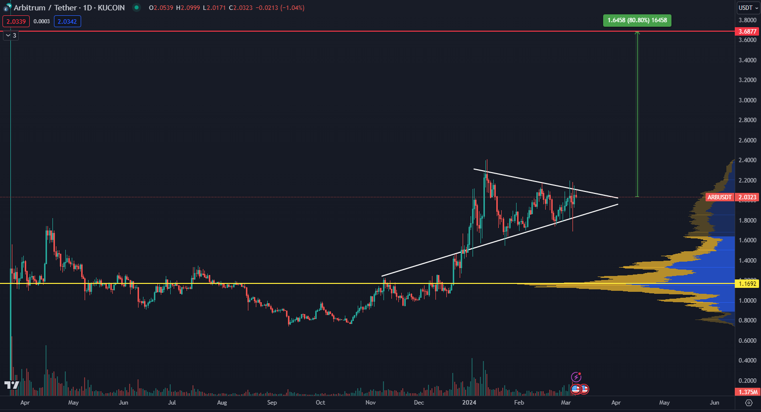 Arbitrum dokáže spracovať tisíce transakcií za sekundu s nízkymi poplatkami. Projekt zlepšuje rýchlosť, škálovateľnosť a nákladovú efektívnosť na sieti Etherea. Výhodou sú tak značne nižšie poplatky ako v prípade Etherea. Z hľadiska samotnej ceny ale taktiež vidíme veľký potenciál zhodnotenia.