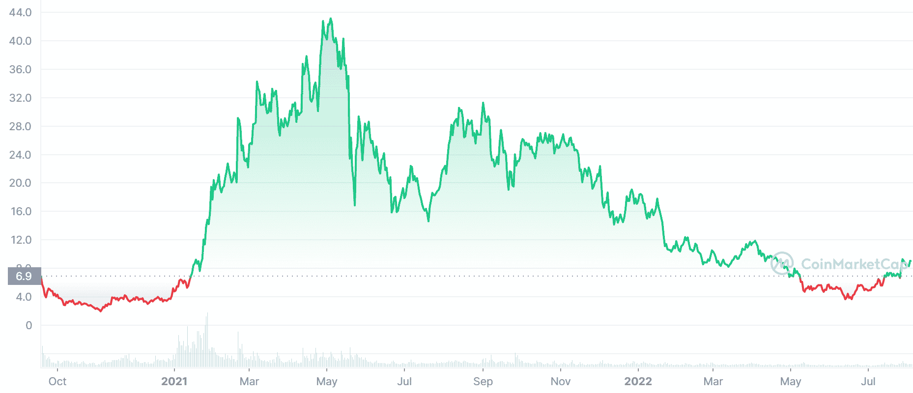Ako poslednú kryptomenu, ktorú sme vybrali do tohto mesačného rebríčka, je Uniswap. Ten je od maxima v takmer 80 % strate a trend sa začína výrazne otáčať. Iba počas júla najznámejšia DeFi kryptomena urobila 100 % nárast. Tým sa spomedzi top 50 kryptomien radí k najrýchlejšie rastúcim.