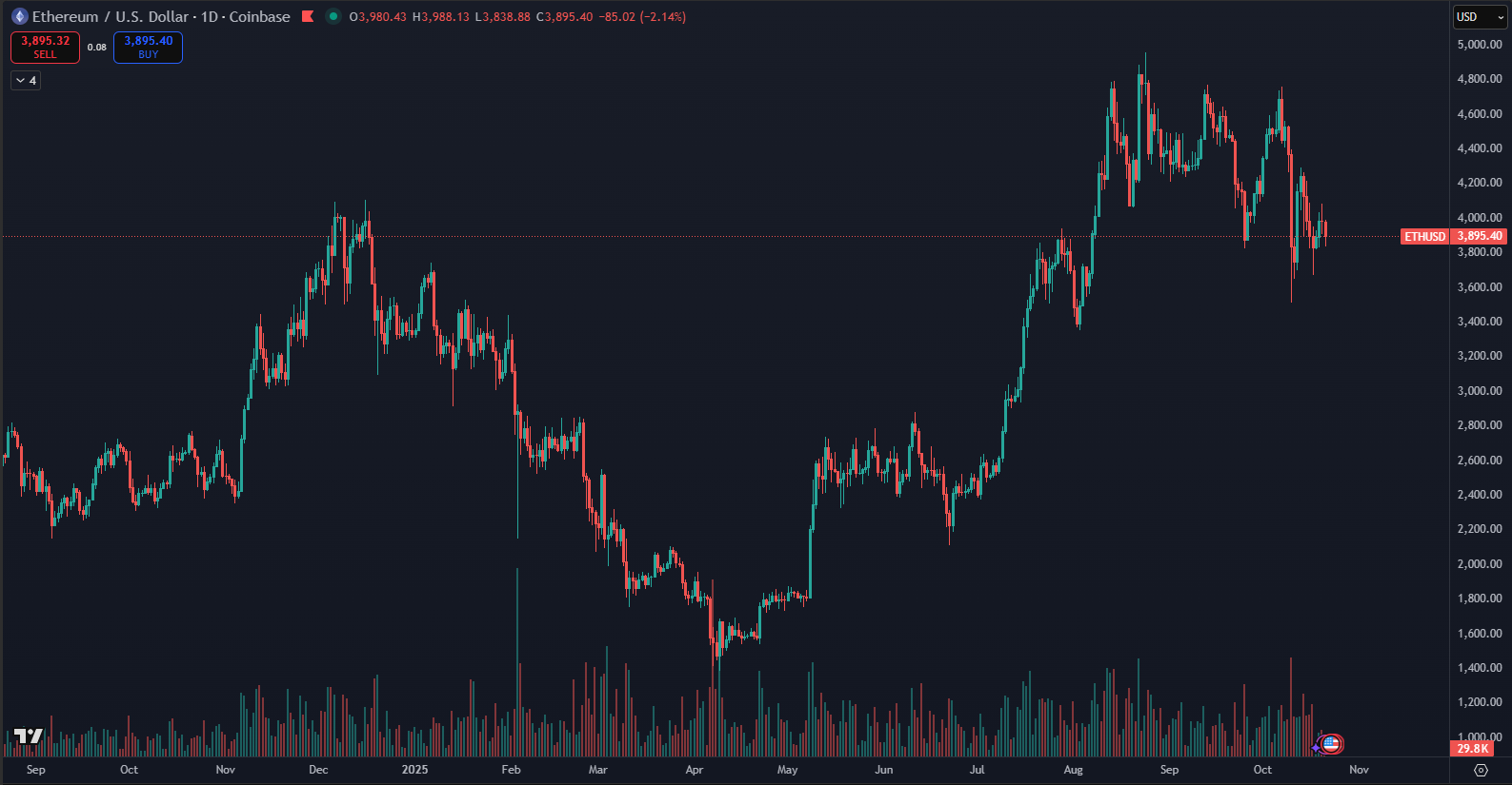 Držba ETH môže byť výhodná nielen pre očakávaný novembrový rast, ale aj pre využitie stakingu, ktorý ponúka pasívny príjem a podporuje stabilitu investície. Trhová cena sa po korekcii začala pohybovať do strany, čo naznačuje zásadné zmiernenie predajného tlaku.