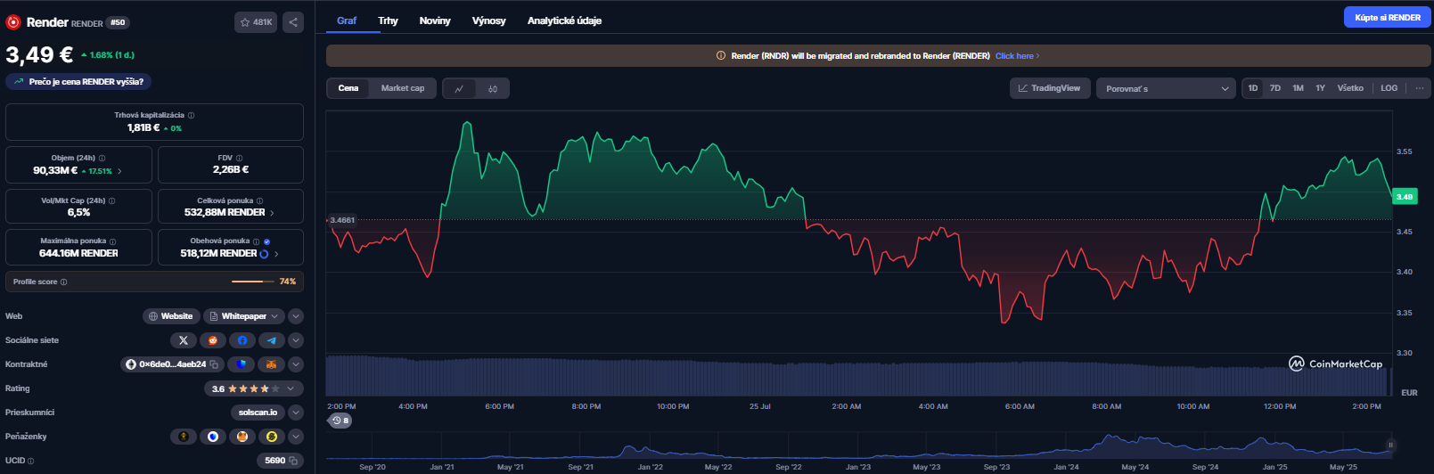Render v skratke. Zdroj: coinmarketcap.com