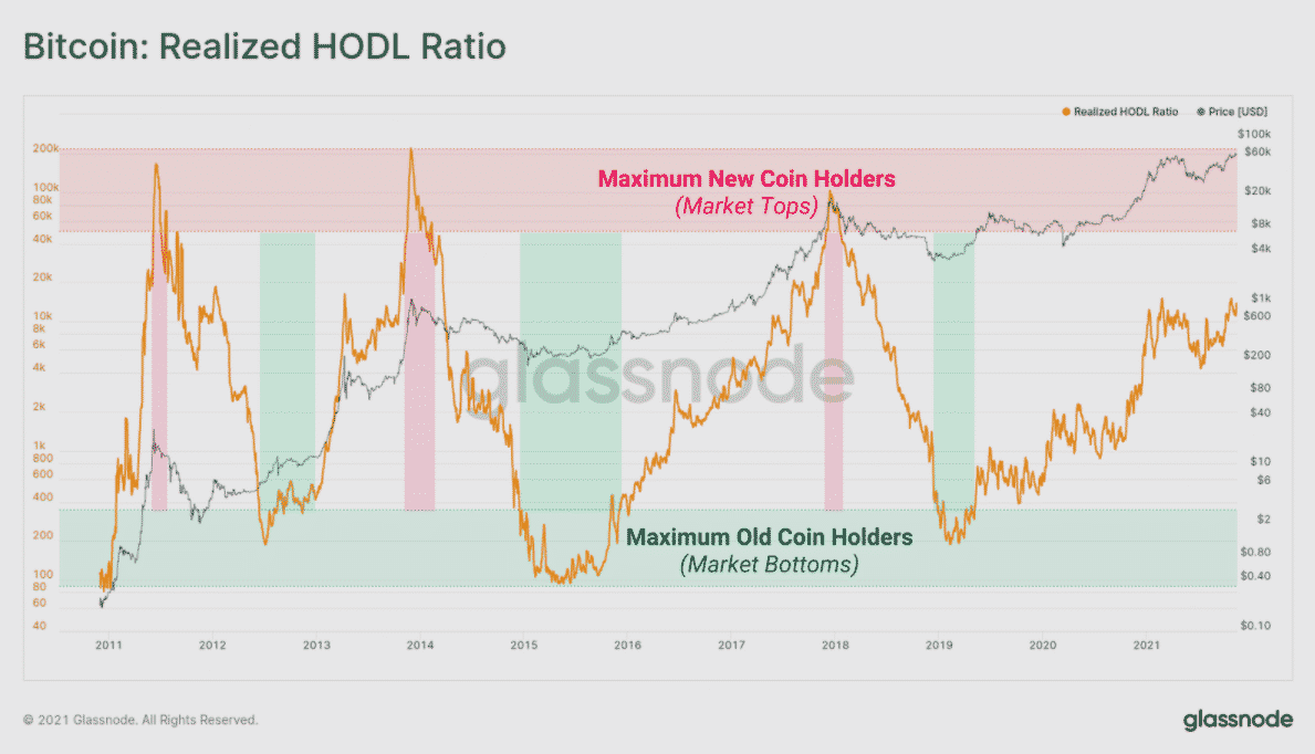Pomer RHODL naznačuje, že trh dosiahne vrchol, keď bude počet novších (mladých) mincí na trhu vysoký v porovnaní so staršími mincami. Správa uvádza, že v súčasnosti pomer RHODL konsoliduje rovnako ako v roku 2013. To naznačuje, že medzi týždennými a ročnými mincami existuje stabilná rovnováha.