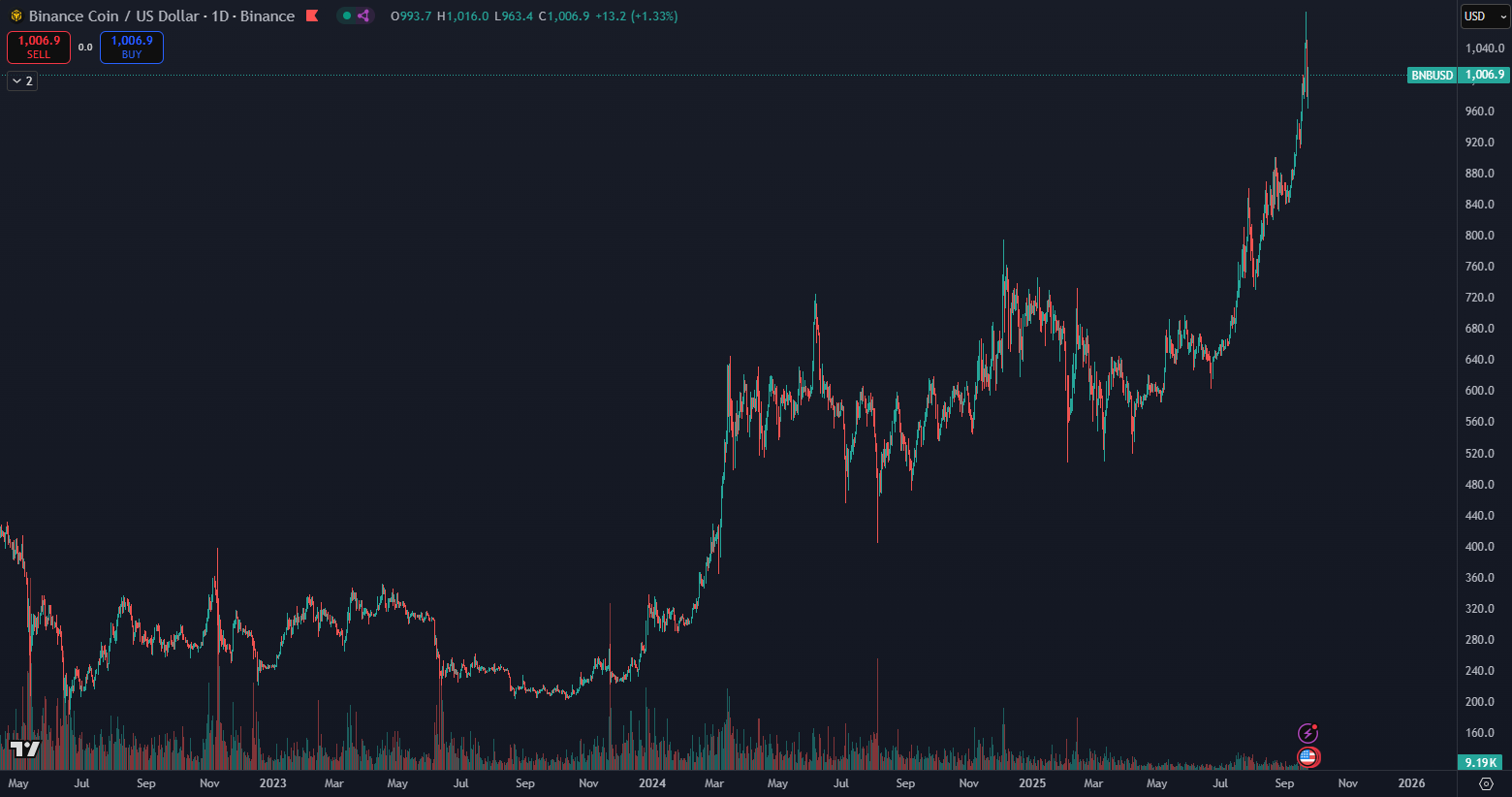 Token BNB nedávno prekonal magickú hranicu 1 000 dolárov prvýkrát v histórii. Hlavným dôvodom optimizmu investorov sú správy o tom, že Binance rokuje s americkým ministerstvom spravodlivosti. Predmetom je ukončenie povinného monitoringu, ktorý jej bol uložený ešte v roku 2023.