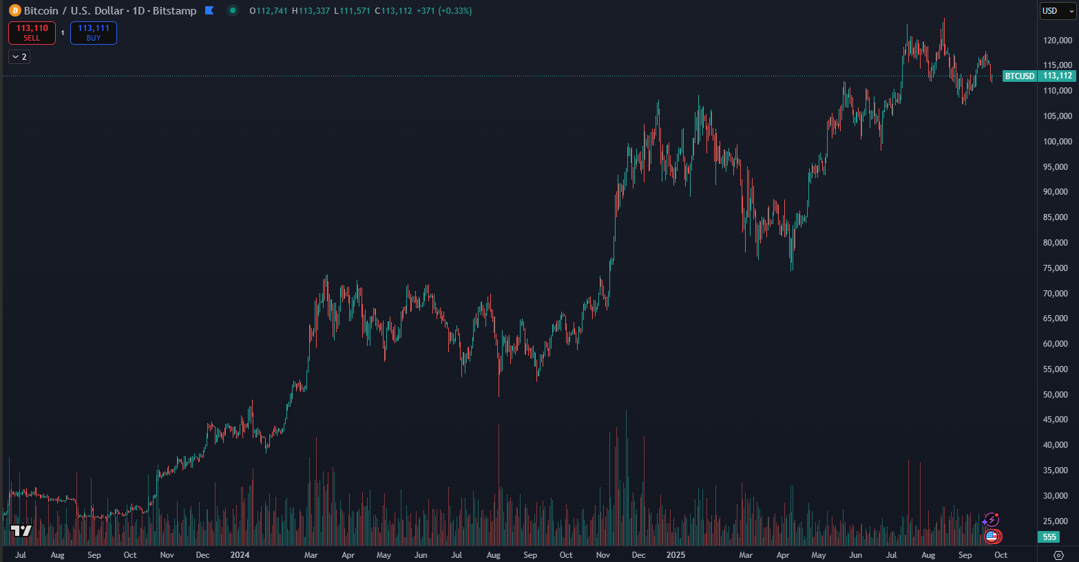 Bitcoin jasne dominuje trhu s kryptomenami s kapitalizáciou 2,25 bilióna dolárov. Jeho cena vzrástla za posledný rok o 80 % a za 5 rokov až o 930 %. Tento dlhodobý rast potvrdzuje postavenie Bitcoinu ako digitálneho zlata a kľúčového investičného aktíva.