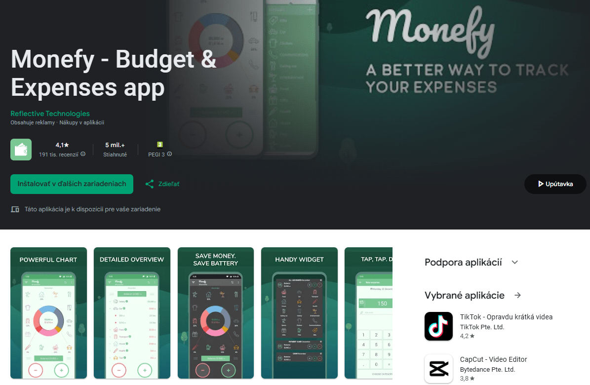 Aplikácia na financie Monify. Zdroj: play.google.com