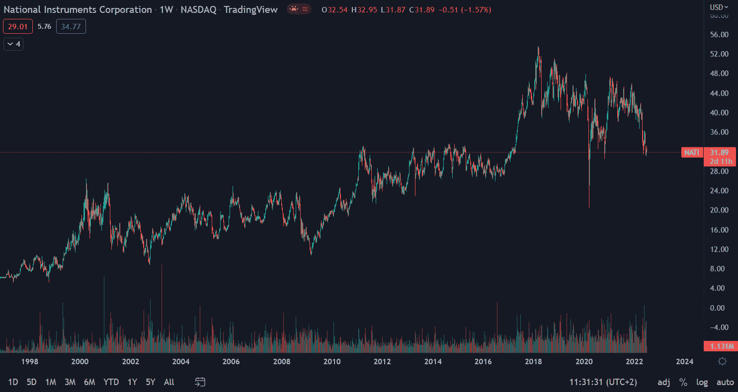 National Instruments je americká nadnárodná spoločnosť s medzinárodnou pôsobnosťou. Je výrobcom automatizovaných testovacích zariadení a virtuálneho prístrojového softvéru. Spoločnosť 28. apríla oznámila zisky za 1. štvrťrok 2022. Čistý zisk vzrástol viac ako päťnásobne pri medziročnom raste príjmov. Silný rast objednávok poháňal výkonnosť firmy.