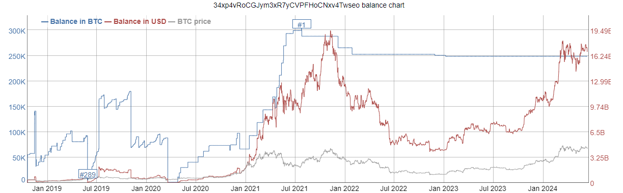 Binance vlastní cold wallet, ktorá je najväčšou peňaženkou na bitcoinovej sieti. V súčasnosti sa na nej nachádza 248 597 BTC, no maximum bolo dosiahnuté v júli 2020 na úrovni 300 000 BTC. Počas roku 2020 a 2021 došlo k obrovským presunom na peňaženku, ktorá ešte v apríli 2020 obsahovala iba 1 370 BTC.