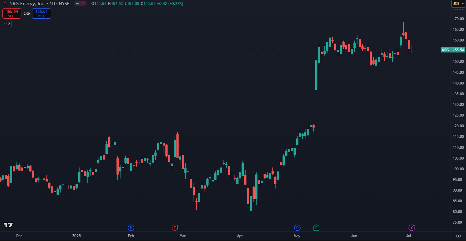 Na treťom mieste sa umiestnila NRG Energy (NRG) s impozantným rastom +72,40 %. NRG Energy je významným poskytovateľom elektrickej energie, ktorý prevádzkuje široké portfólio elektrární, vrátane klasických elektrární na fosílne palivá, ale aj obnoviteľných zdrojov, ako sú veterné a solárne elektrárne.