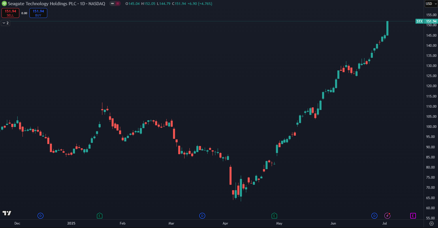 Na prvom mieste v rebríčku najziskovejších akcií roku 2025 je Seagate Technology (STX) so zhodnotením +76,04 %. Seagate je popredným svetovým výrobcom dátových úložných zariadení, ako sú pevné disky a SSD disky. Firma profitovala z rastúceho dopytu po dátových riešeniach, ktoré sú nevyhnutné pre cloudové služby, dátové centrá a digitalizáciu rôznych odvetví.