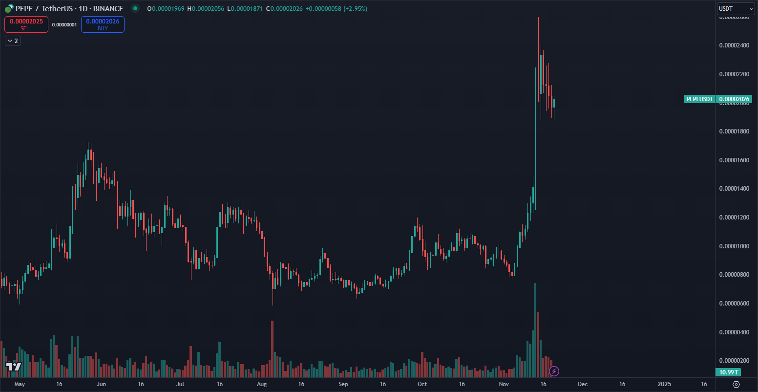 - Pepe coin dosiahol rekordné obchodné objemy a likviditu.