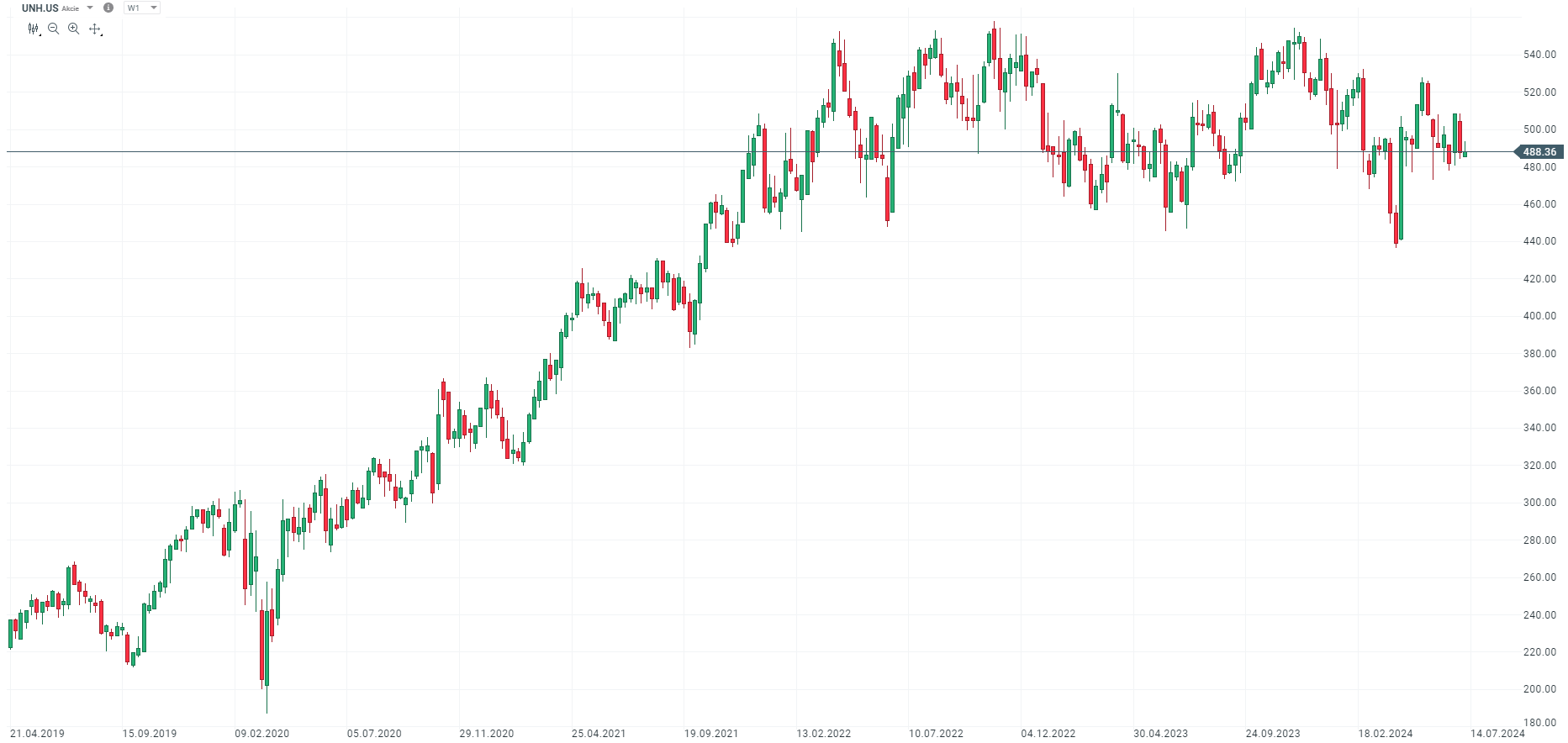 UNH je najväčšia zdravotná poisťovňa v USA. Jej akcie sa od začiatku roka prepadli o takmer 10 %, a to hlavne kvôli tomu, že Bidenova administratíva sa snaží preniesť časť rastúcich nákladov v zdravotníctve na samotné poisťovne. Veľké problémy zavinili aj hackeri, ktorí vykonávali kybernetické útoky na lekárenskú divíziu UNH, a postihli tak stovky lekární po celom svete.