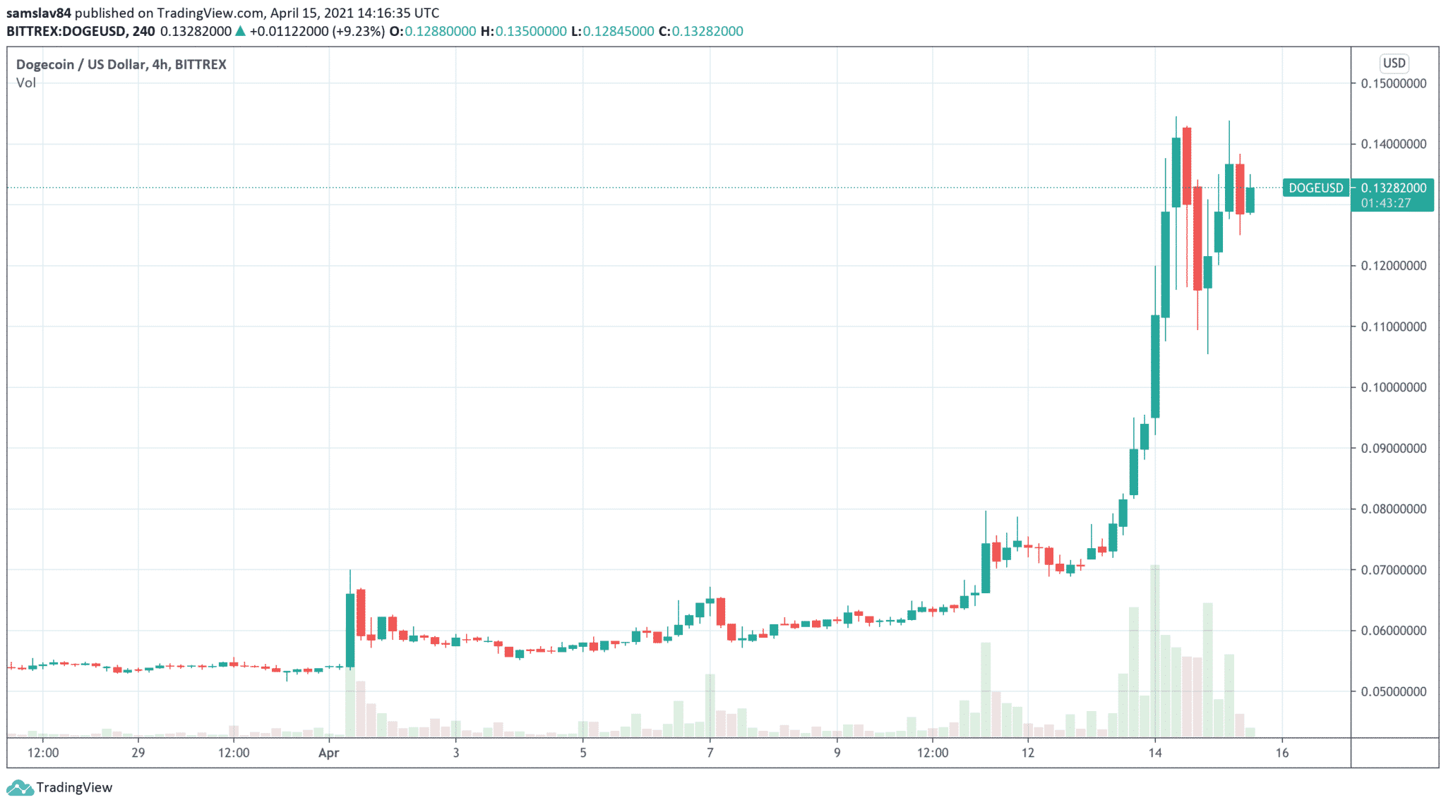 Najobľúbenejší memecoin na svete za sebou má skvelé dni. Jeho hodnota stúpla o viac než 100% tesne po tom, čo Bitcoin dosiahol nové historické maximu. DOGE sa tak prvýkrát v histórii obchoduje za viac než desať centov a zápasí s kryptomenou Chainlink LINK o desiatu priečku na coinmarketcape.
