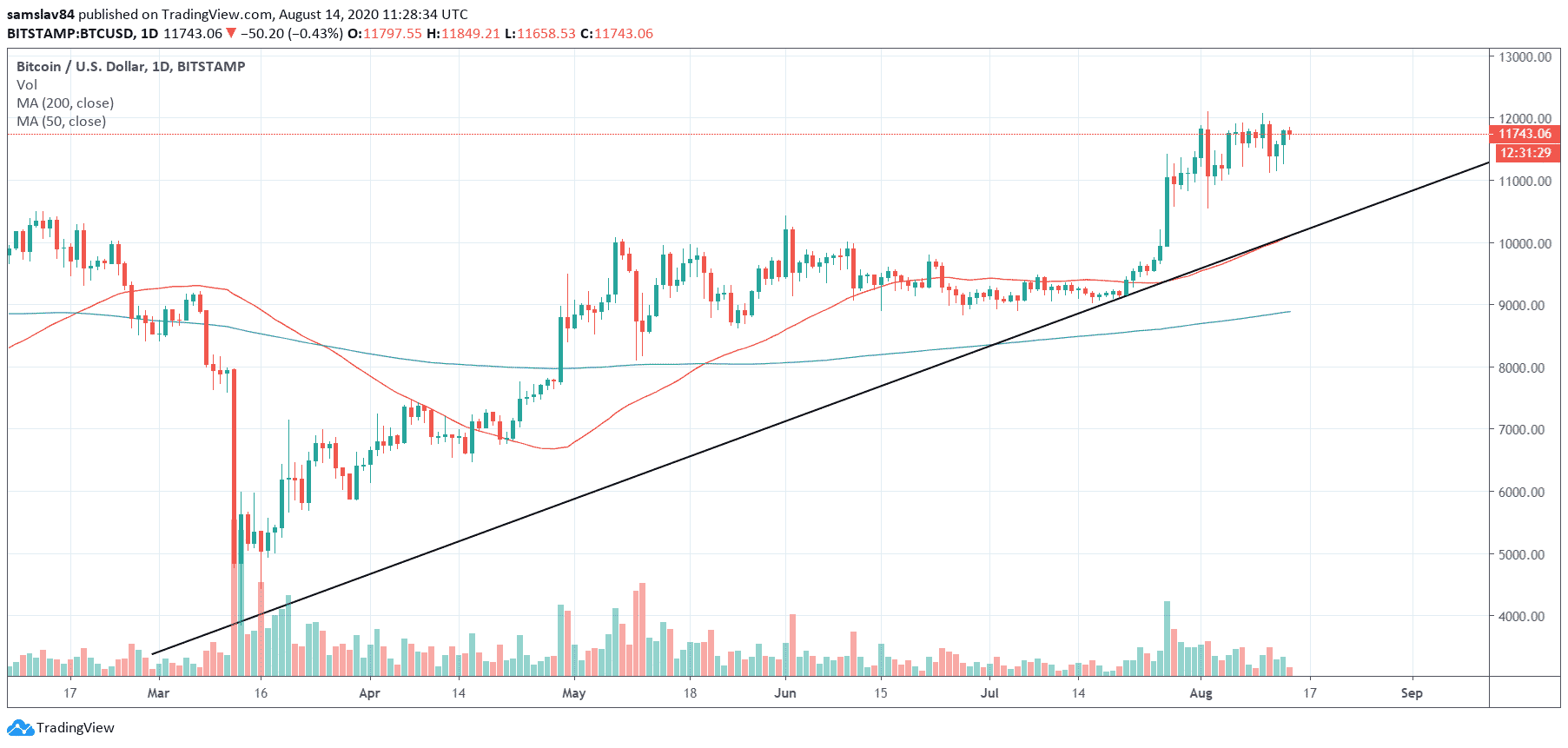 Cena Bitcoinu sa za posledných 10 dní dvakrát odrazila od hladiny 12 000 $