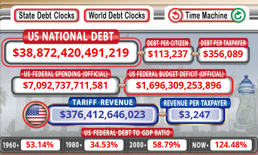 Od polovice roka 2025 rastie federálny dlh USA tempom približne 14 % ročne, ukazujú údaje US Debt Clock. Ak tento trend udrží svoju dynamiku, celkový dlh sa medziročne zvýši o 15 %.