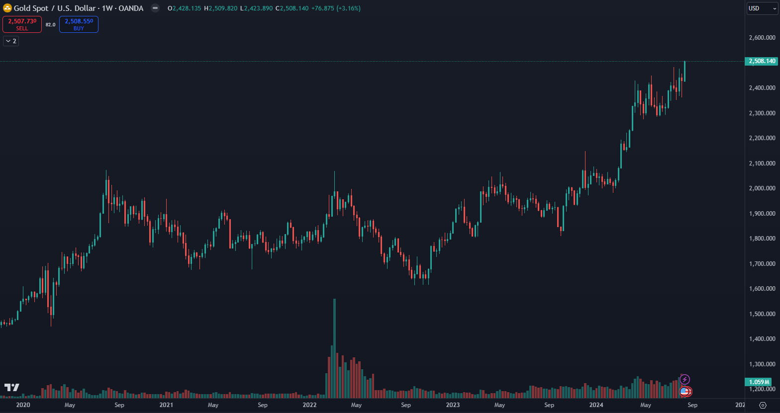 Zlato dokázalo prekonať historické maximum a cena sa v čase písania pohybuje na úrovni 2 508 dolárov. Taktiež sa podarilo zlatu s prehľadom zvládnuť poslednú korekciu zo začiatku augusta, kedy japonský index Nikkei spustil vlnu výpredajov. A práve to je zrejme ďalším pozitívnym faktorom pre drahý kov.