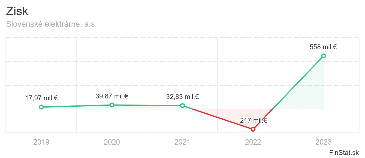 Slovenské elektrárne zaznamenali v roku 2023 raketový rast zisku. Spoločnosť sa dostala zo straty vo výške takmer 217 miliónov eur do zisku, ktorý neprekonala žiadna iná slovenská firma. Slovenské elektrárne dosiahli v roku 2023 zisk v hodnote 558 miliónov eur, aj keď tržby spoločnosti klesli o 4 %. Na dani z príjmu spoločnosť odviedla štátu 88,9 milióna eur.