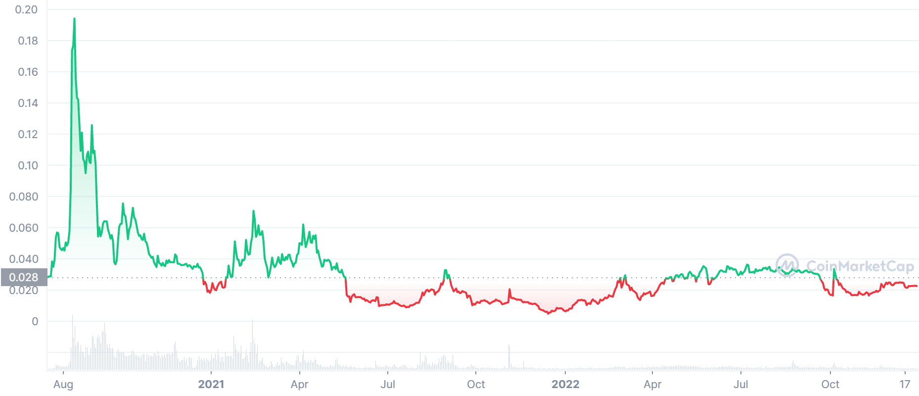 Najziskovejšia známa kryptomena roka 2022 je NEST. Od zalistovania na burzy sa stabilne pohybuje na hodnote okolo 2 centov. Do rebríčka sa dostala hlavne preto, lebo na konci minulého roka sa skončila niekoľko mesiacov trvajúca korekcia, ktorá dostala kryptomenu na historické minimum. Od januára už iba rastie a za celý rok si pripísala viac ako 240 %.