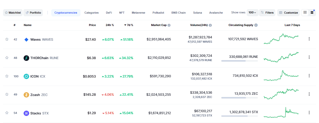 Máme tu záver týždňa a prišiel čas pozrieť sa na top kryptomeny, ktoré boli v zisku počas posledných 7 dní. Kryptomeny sú výhradne z rebríčka top 100 kryptomien podľa trhovej kapitalizácia na webovej stránke coinmarketcap.com.