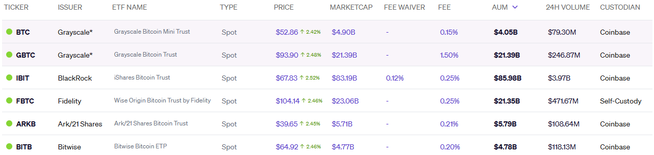 IBIT spravuje aktuálne 86 miliárd dolárov, čo predstavuje neuveriteľný vzostup, ukazujú údaje Blockworks. Nasleduje fond od Grayscale a Fidelity, ktoré dosahujú približne rovnakú hodnotu 21 miliárd dolárov. Najväčšiu päťku uzatvára Ark Shares (5,79 miliardy) a Bitwise (4,78 miliardy).