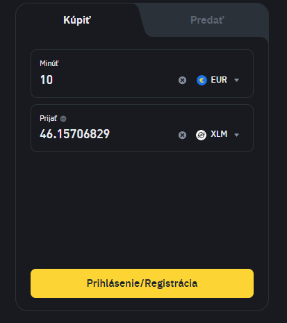 Ak vás kryptomena XLM zaujala a chcete ju pridať do svojho portfólia, odporúčame vám kryptomenovú burzu Binance, ktorá je zároveň najväčšou spoločnosťou v sektore. Nákup zvládne aj začiatočník a minimálny limit je len 10 eur. Nákup XLM vidíte na obrázku nižšie.