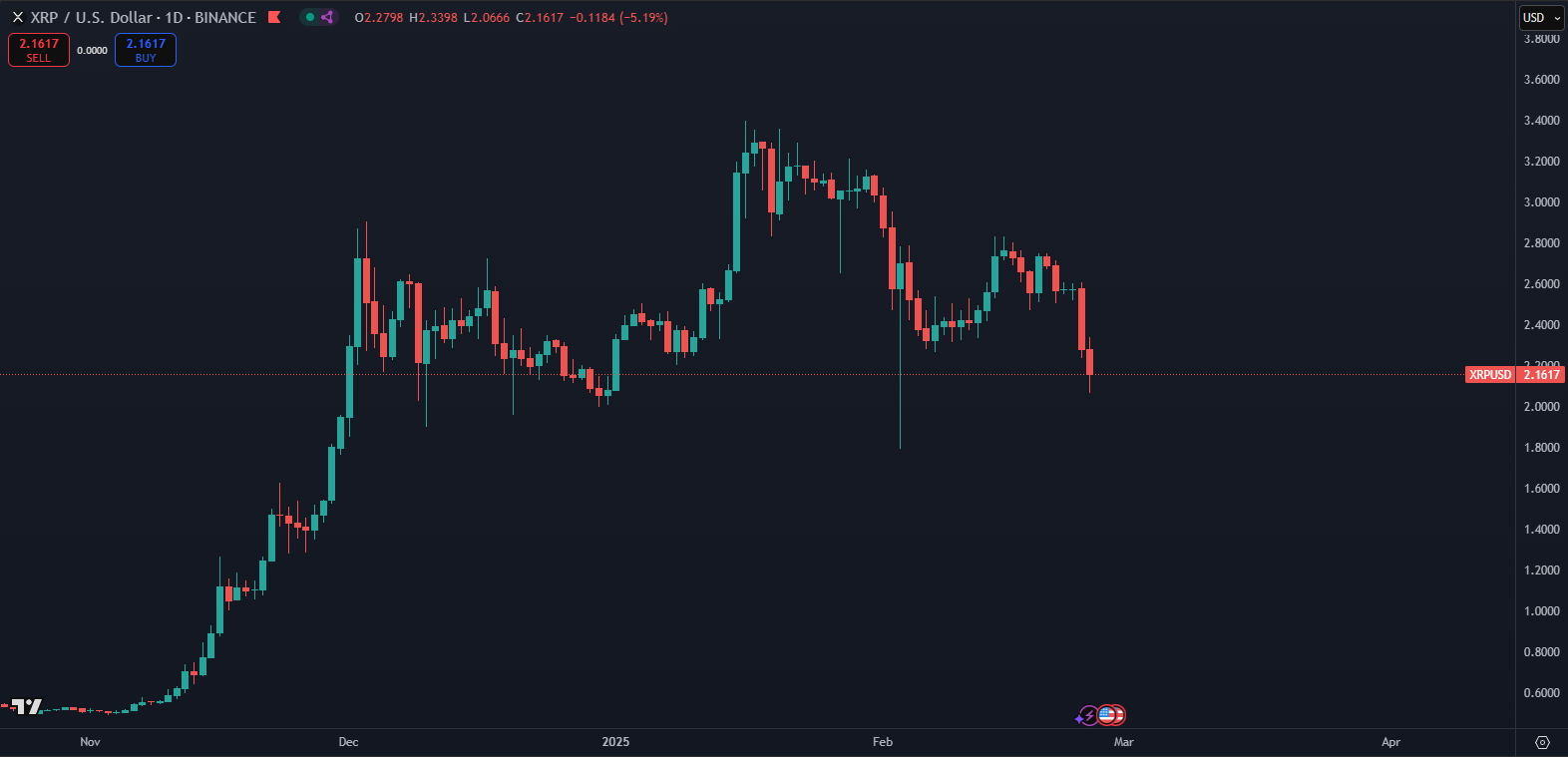 V poslednej dobe však XRP čelil miernemu poklesu v dôsledku korekcie trhu, aktuálne na úrovni 2,16 dolárov. Napriek tomu je pozitívna nálada stále prítomná a analytici predpovedajú, že cena XRP by mohla vzrásť na hranicu 3 dolárov. Krypto analytik Ali predpovedá potenciálny 14 % cenový nárast XRP v blízkej budúcnosti.