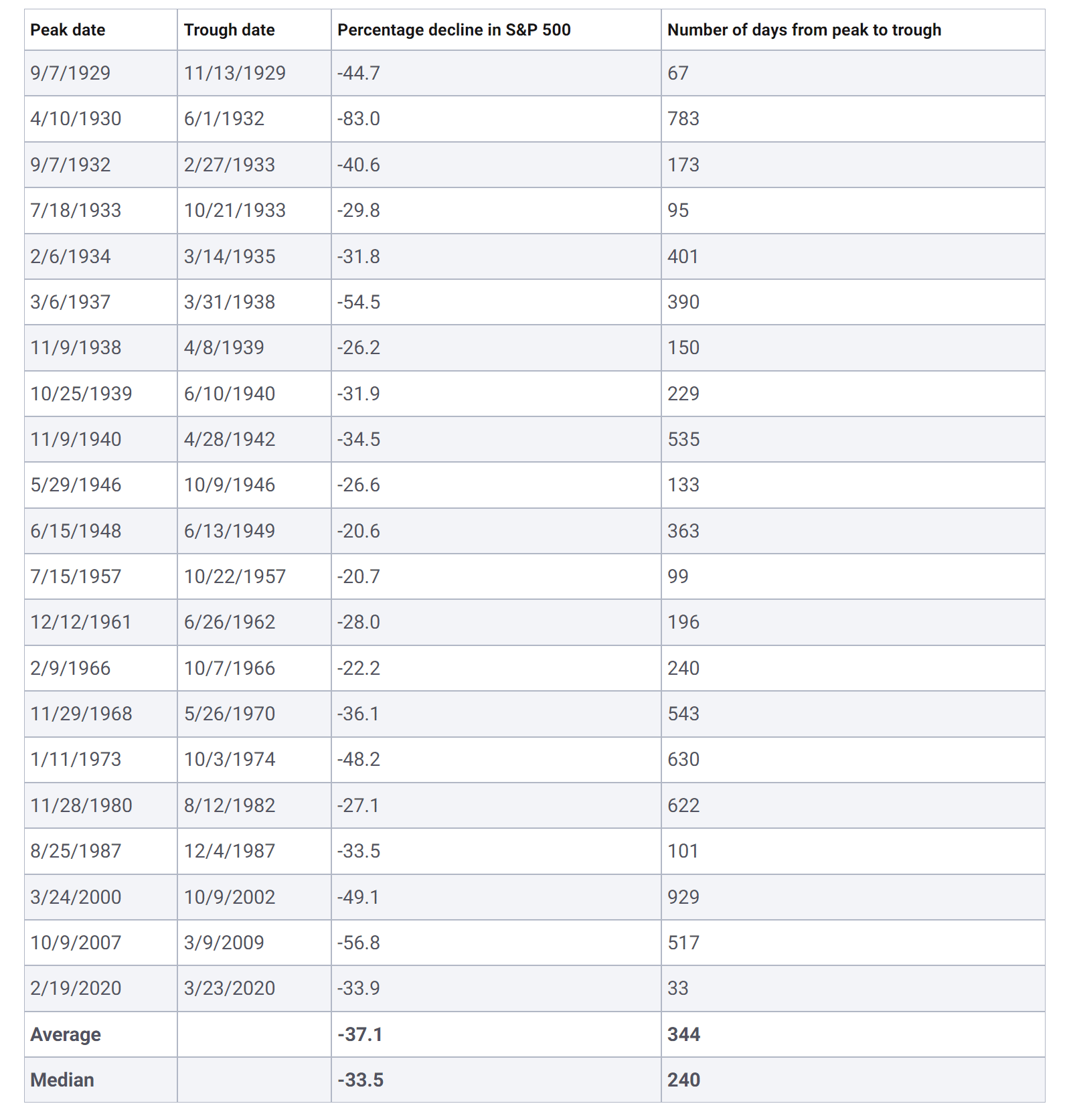 Bitcoin je aktuálne 70 % od historického maxima. Pre porovnanie s minulosťou, najväčšia kryptomena niekoľkokrát klesla dokonca až o 80 % od maxima, takže ďalší pokles sa určite nedá vylúčiť. Podobne je na tom aj akciový index S&P500, ktorý poklesol od maxima o 25 %. Počas posledných kríz zaznamenal priemerný pokles až o 35 %.