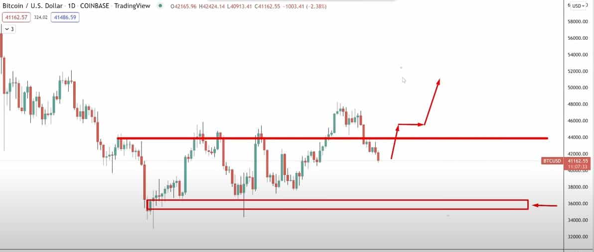 Druhou možnosťou je podľa Creda potvrdenie býčej dominancie na úrovni 44 000 USD. Cieľom je teda získať túto úroveň a premeniť ju na support.