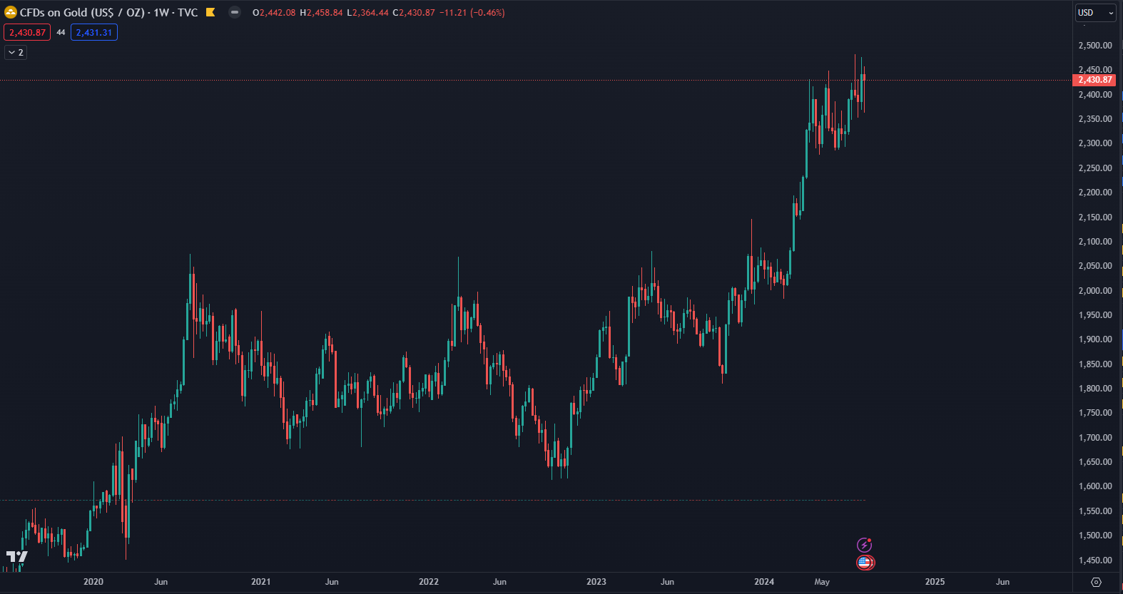 Väčšinou je synonymom zaistenia voči inflácii zlato a striebro. Bohužiaľ, striebro posledné roky nestíhalo držať krok so zlatom, a preto uvádzame ako tretie aktívum iba zlato. Jeho cena sa obchoduje blízko historického maxima a jeho silu sme mohli vidieť aj počas minulotýždňového prepadu na globálnych trhoch.