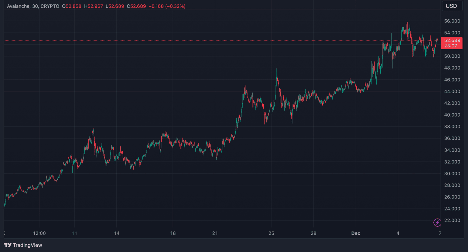 AVAX stúpa o viac ako 130 % za mesiac