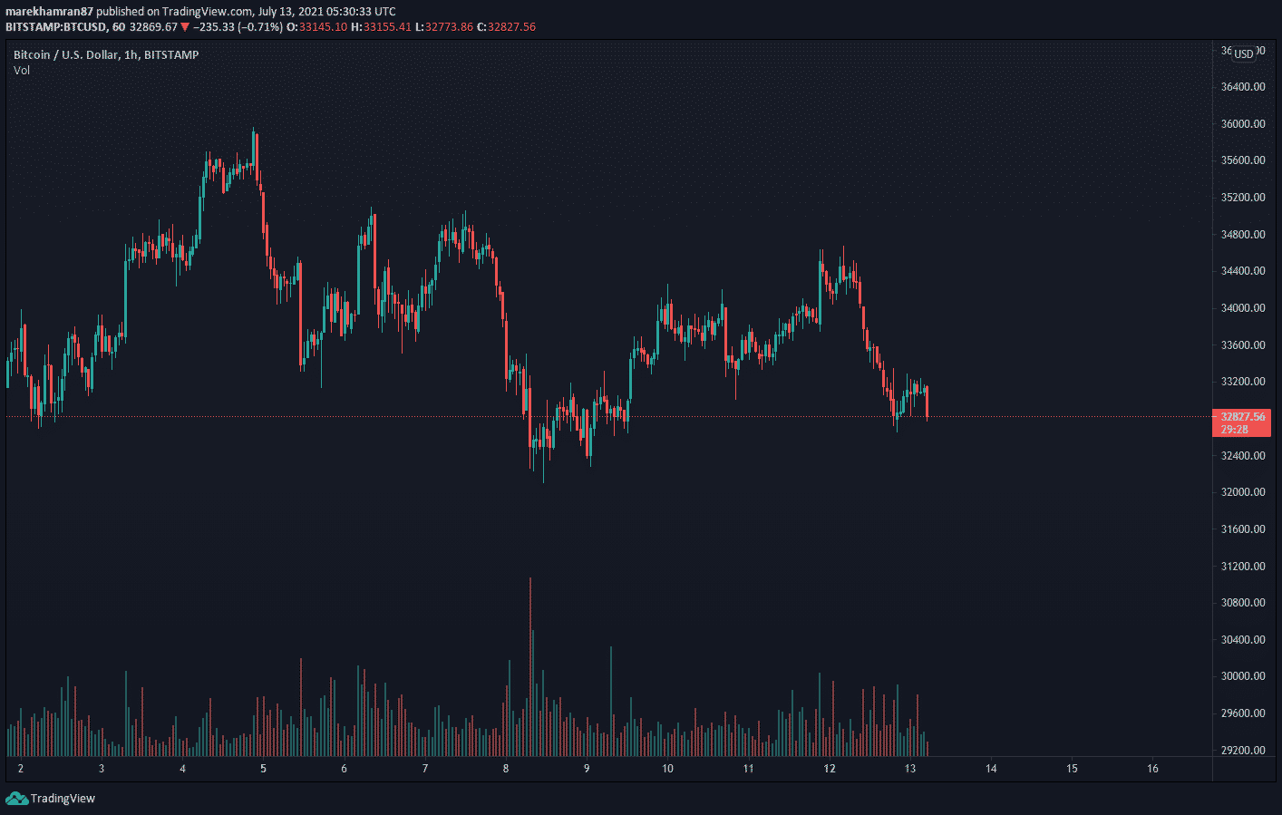 Ako môžeme vidieť na grafe nižšie, Bitcoin si 12.júla udržal silný support na úrovni 33 000 USD čo značí veľký záujem býkov na tejto cenovej úrovni.