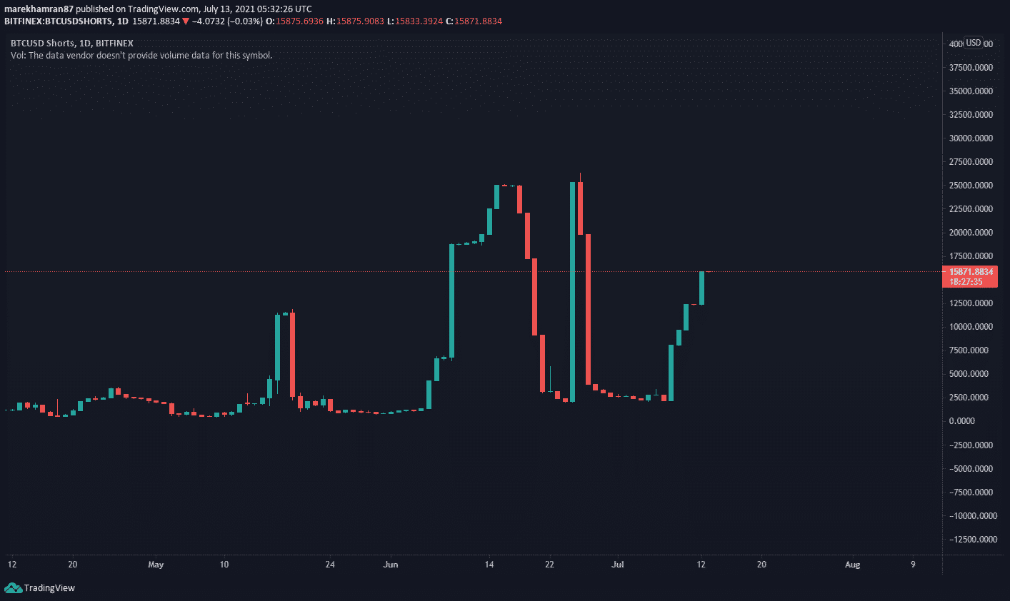 BTC/USD shorts denný graf Bitfinex. Zdroj: TradingView