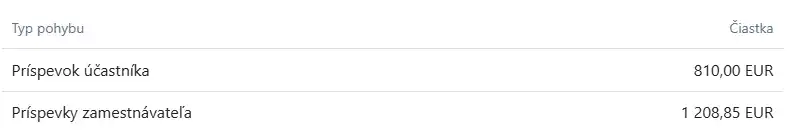 - Žiadny príspevok od zamestnávateľa ani štátu