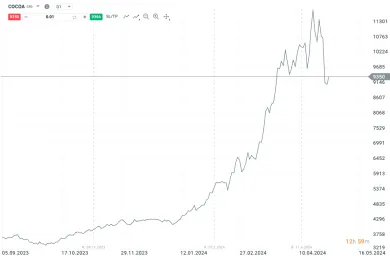 Jednou z najzaujímavejších komodít posledných mesiacov je kakao, ktorého cena za posledný rok vzrástla o viac ako 300%. Za rastom cien stojí niekoľko faktorov, ale hlavným z nich je slabšia úroda v Afrike v dôsledku zlého počasia a šírenia chorôb, odkiaľ pochádza väčšina produkcie. Ceny však už v priebehu niekoľkých dní od svojho vrcholu klesli približne o 35 %, aj keď časť strát bola následne zmazaná. Vysoká volatilita je spôsobená aj burzami, na ktorých sa s kakaom obchoduje, ktoré zvýšili marže potrebné na zabezpečenie kontraktov.