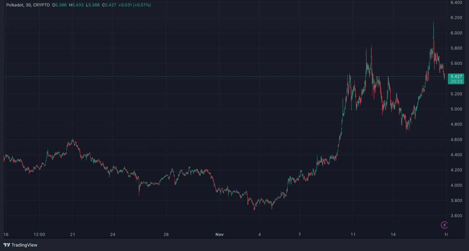 Významné cenové pohyby Polkadot. Zdroj: TradingView