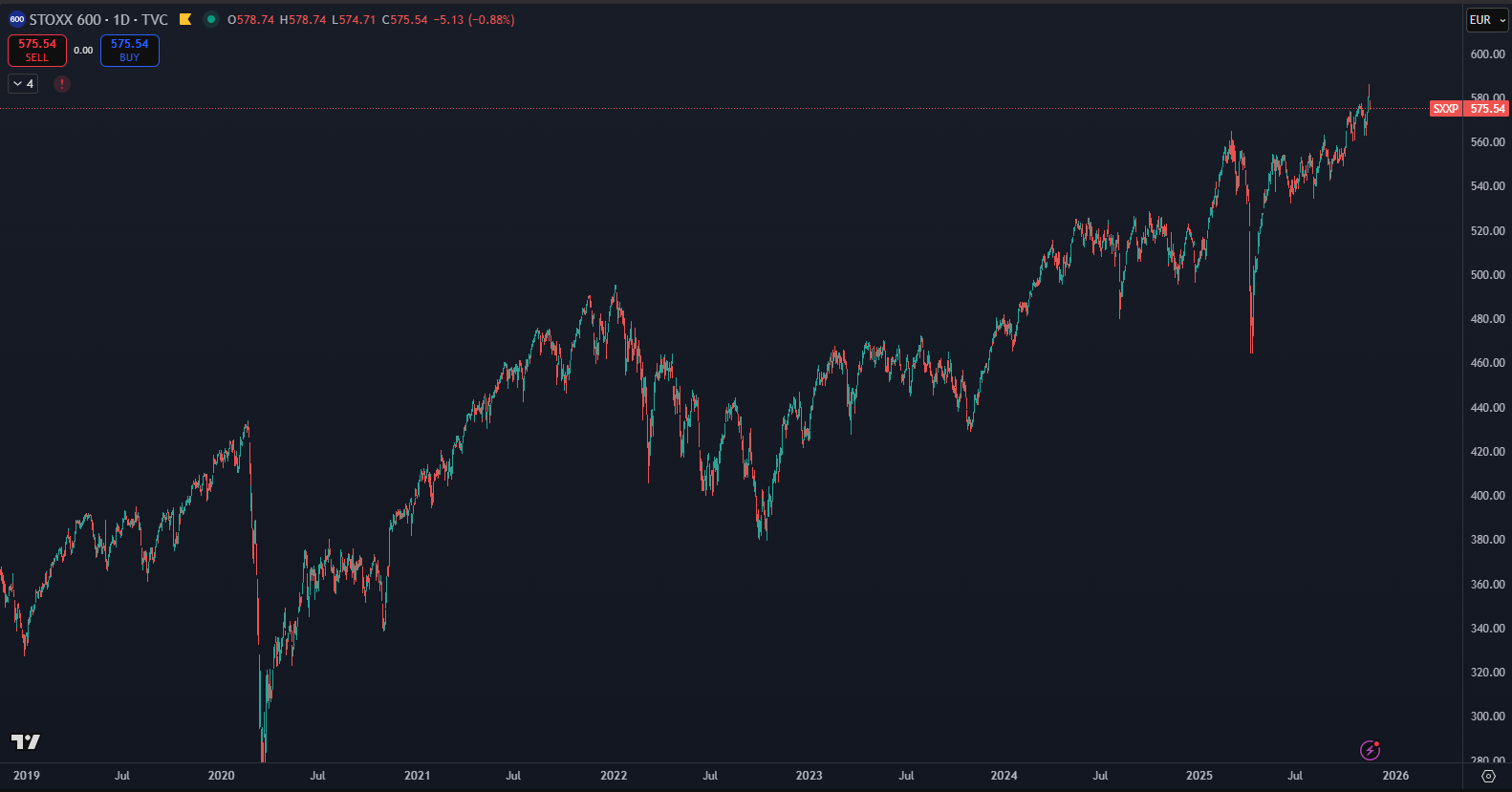 Akcie v indexe Stoxx 600 na historickom maxime. Zdroj: tradingview.com