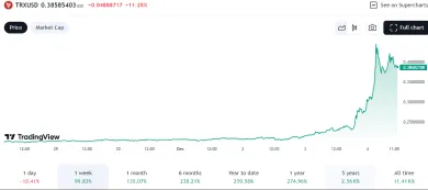 V posledných týždňoch zaznamenal Tron (TRX) pôsobivý rast, pričom token vzrástol o 98 % za posledných sedem dní a o 44 % za posledný mesiac. Tento nárast vyšvihol TRX na jeho najvyššiu cenovú úroveň 0,4097 dolára, čo znamená výrazný nárast o 78 % za jediný deň. Takýto silný výkon naznačuje zvýšený záujem a aktívnu účasť v rámci ekosystému TRX.