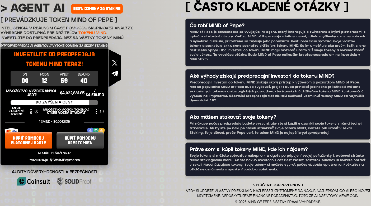 Táto unikátna kombinácia tematického humoru a umelej inteligencie oslovila kryptomenových investorov natoľko, že tvorcom projektu sa v predpredajnej fáze doposiaľ podarilo vyzbierať vyše 4 milióny dolárov, a to len v priebehu jedného týždňa.