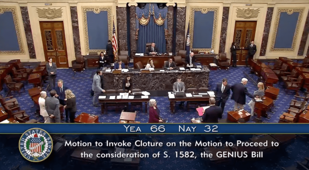 Ďalším návrhom kryptomenového zákona, ktorý získava čoraz väčšiu podporu, je GENIUS Act (Guilding and Establishing National Innovation for US Stablecoins Act). Podľa Davida Sacksa, kryptoporadcu prezidenta Trumpa, má návrh reálnu šancu prejsť Senátom s podporou oboch politických táborov.