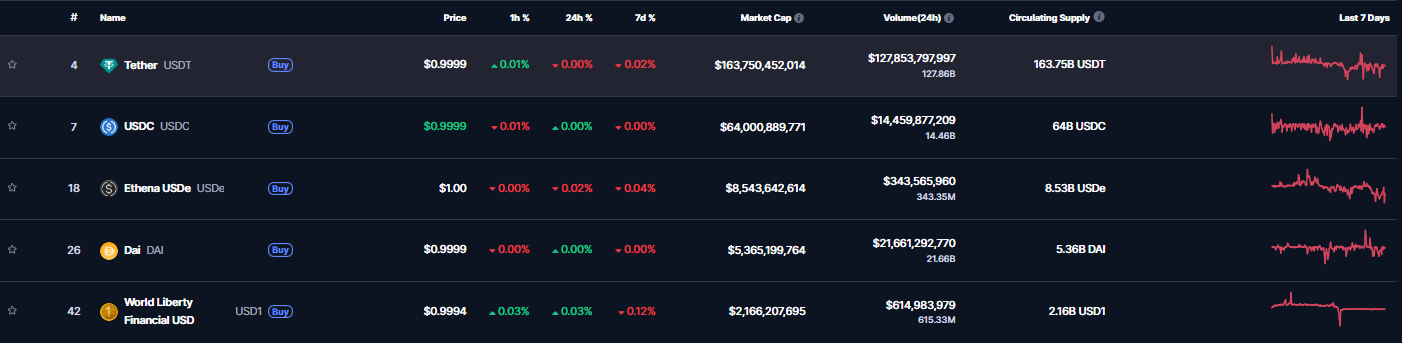 Najväčšie stablecoiny na svete v roku 2025. Zdroj: coinmarketcap.com
