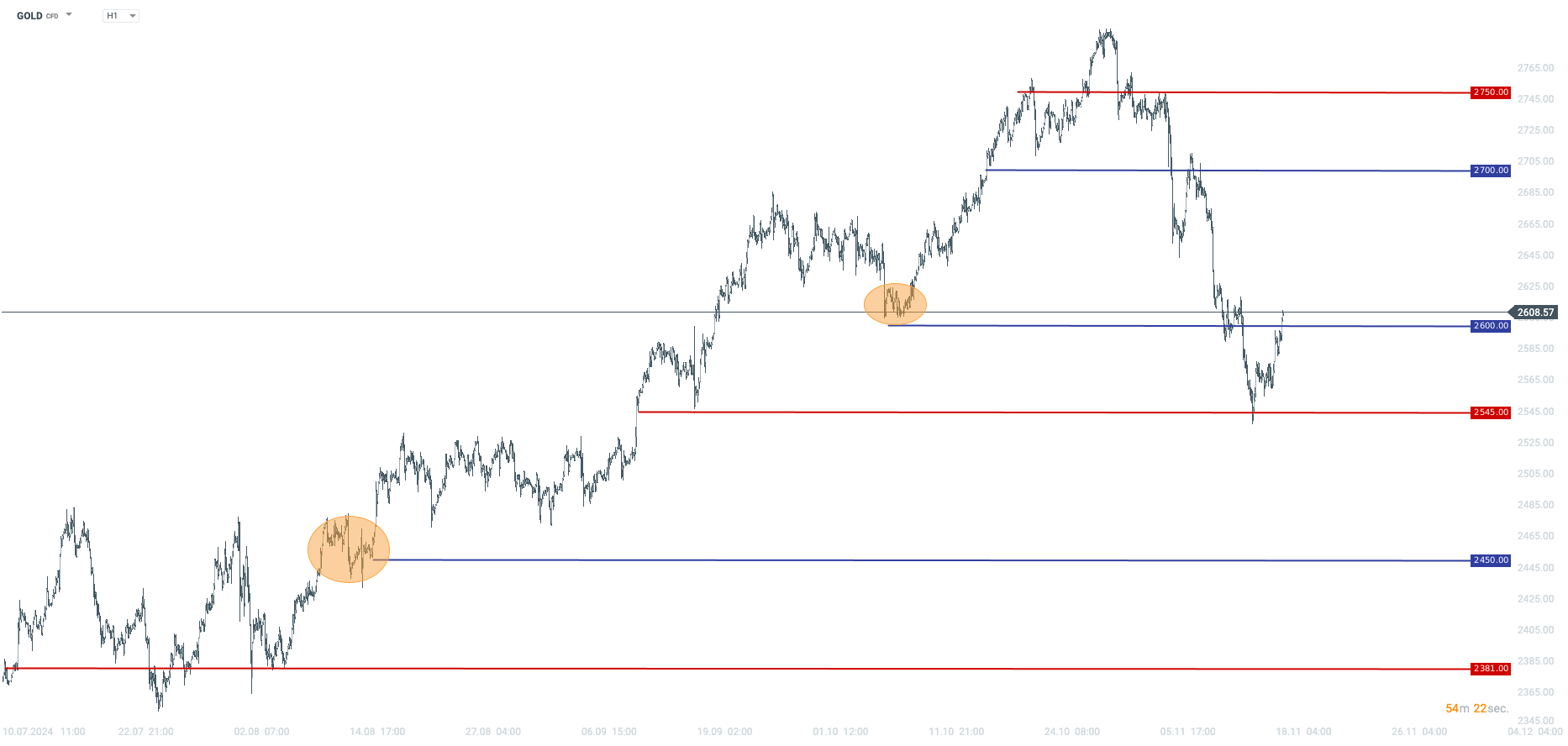 V posledných dňoch trh so zlatom zaznamenal pokles o viac ako 9 % z maximálnej hodnoty 2790, pričom cena zlata klesla na dvojmesačné minimum. Tento trend ovplyvnilo posilnenie amerického dolára a zvýšený záujem investorov o rizikovejšie aktíva, ako sú napríklad kryptomeny, čo súvisí s nedávnym znovuzvolením Donalda Trumpa za prezidenta USA. Napriek tomuto poklesu odborníci zostávajú optimistickí a očakávajú, že geopolitické napätie a vysoký dopyt centrálnych bánk po zlate môžu v blízkej budúcnosti podporiť jeho cenu.
