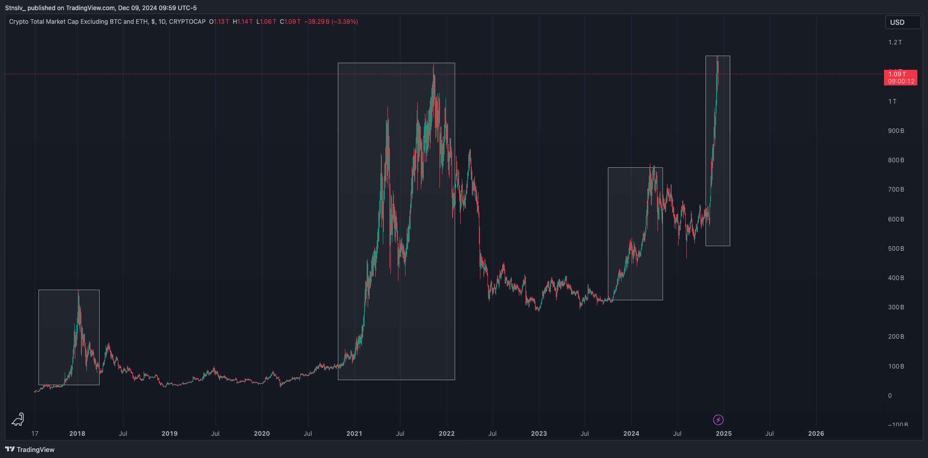 Kryptotrh v decembri 2024 ukazuje jasný trend: dominancia Bitcoinu klesá, zatiaľ čo altcoiny získavajú na sile. Tento vývoj naznačuje presun kapitálu od Bitcoinu k alternatívnym kryptomenám a Ethereu, ktoré ponúkajú atraktívne príležitosti pre investorov.