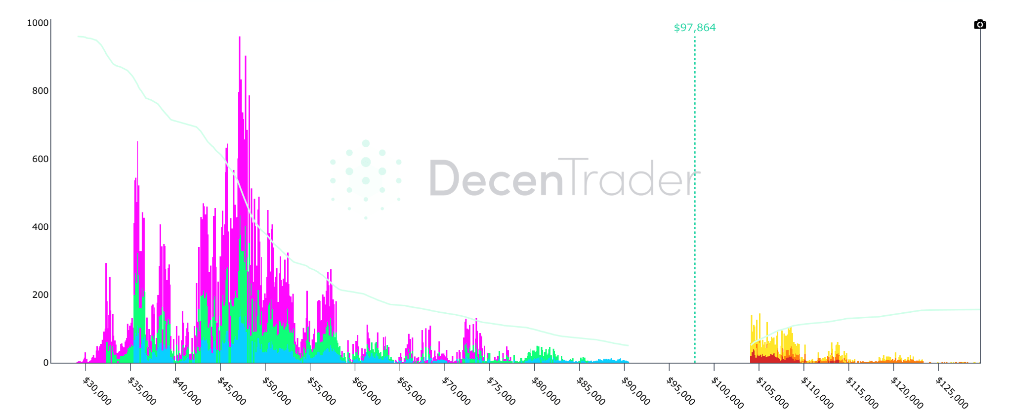 Ďalšou formou analýzy môže byť pohľad na likviditu Bitcoinu na jednotlivých cenových úrovniach s cieľom odhaliť čakajúce príkazy od jednotlivých obchodníkov – napríklad vo forme príkazov na zastavenie straty.