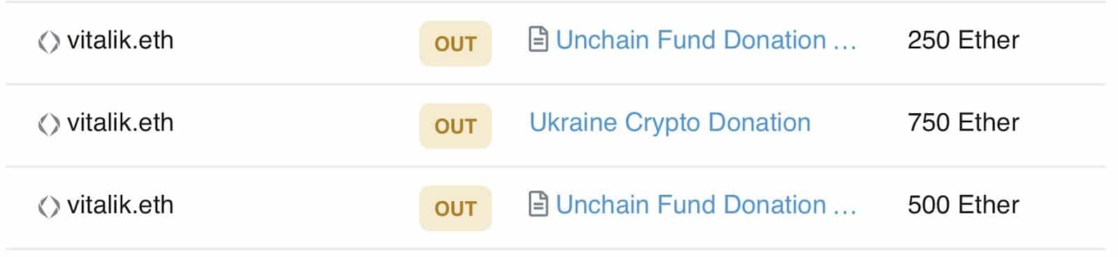 .@VitalikButerin donated almost $2.5M in $ETH to @_AidForUkraine 2 days ago, and didn't say a word! He's also donated $2.5M to @Unchainfund.