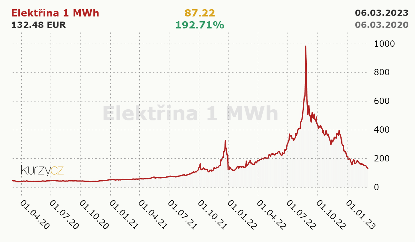 V dôsledku vysokej ceny plynu sa predražili aj ceny elektrickej energie, keďže značná časť sa vyrába z plynu. Na Slovensku štát garantoval zastropené ceny pre všetkých odberalov v prípade elektrickej energie na 199 eur/1 megawatthodina za elektrinu a 99 eur/1 megawatthodina za plyn.