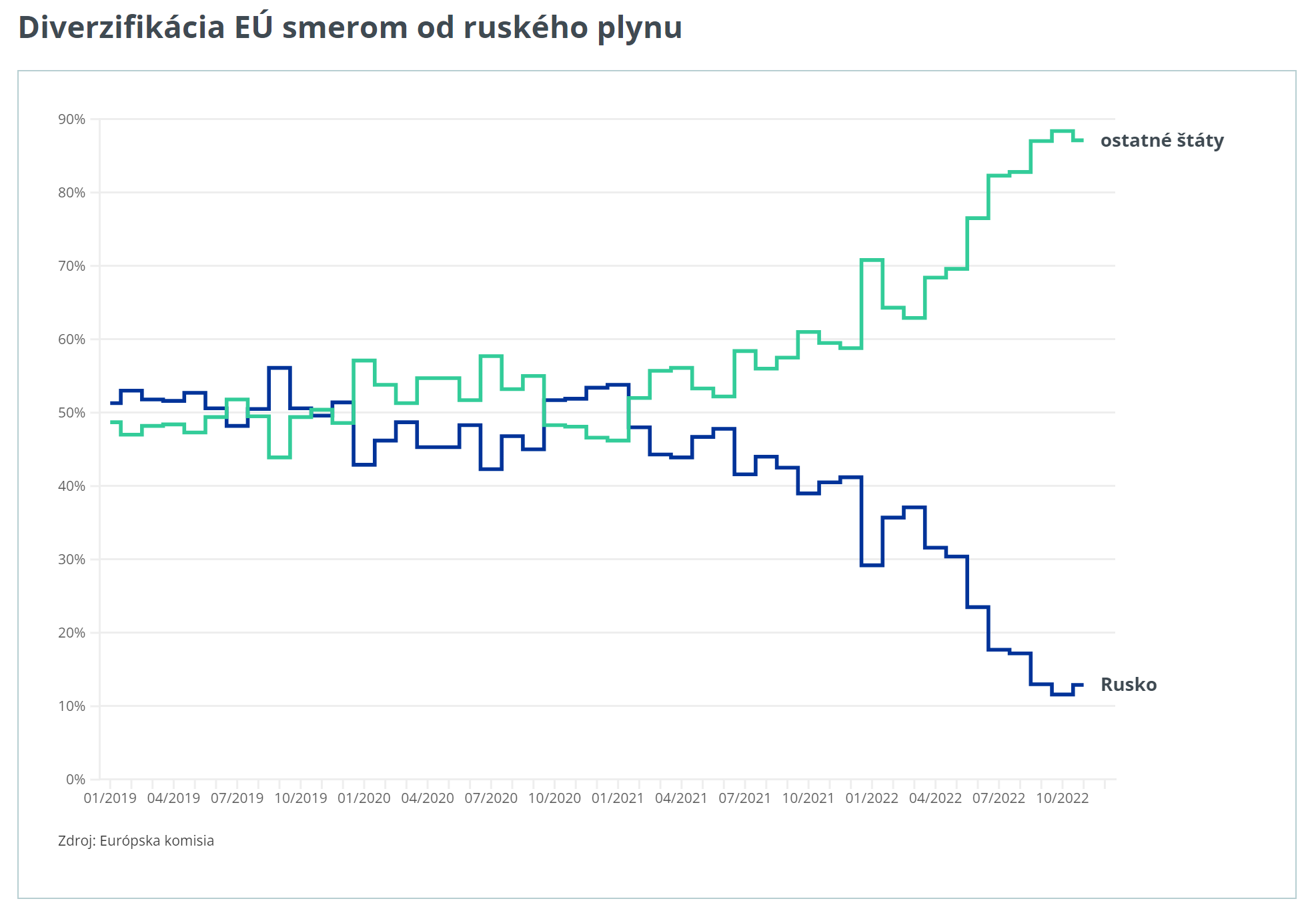 Začiatok vojny spôsobil vrhnutie sankcií na Rusko, ktoré sa týkali aj dovozu plynu a ropy do Európy. Keďže sme závislí na dovoze z Ruska, vznikla prvotná otázka, ako zabezpečíme vykurovaciu sezónu a výrobu pohonných hmôt. V roku 2021 predstavoval dovezený zemný plyn 83 % z celkového množstva plynu v EÚ. Približne 50 % tvoril dovoz z Ruska a ďalších 50 % z ostatných štátov. Od apríla sa pomer začal výrazne meniť a ku dnešnému dňu tvorí dovoz z Ruska iba 10 %.